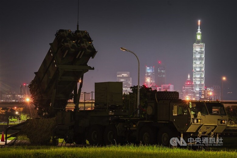 圖為愛國者飛彈發射車於漢光41號演習期間,部署北市美堤河濱公園演練戍守政經中樞。(中央社檔案照片)