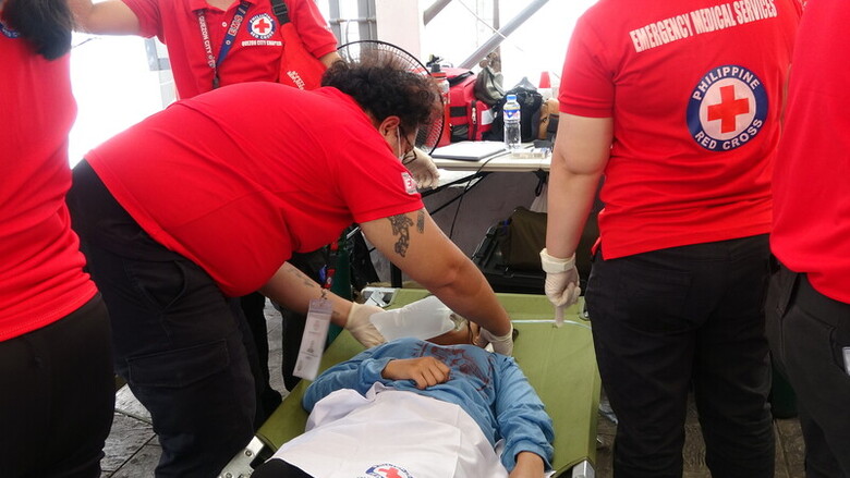 菲律賓天主教規模最大年度宗教盛事「黑色拿撒勒節」遊行,9日在馬尼拉市舉行。由於每年都會有人受傷,菲律賓紅十字會等救護單位都會在現場支援及待命。(中央社記者林行健馬尼拉攝)