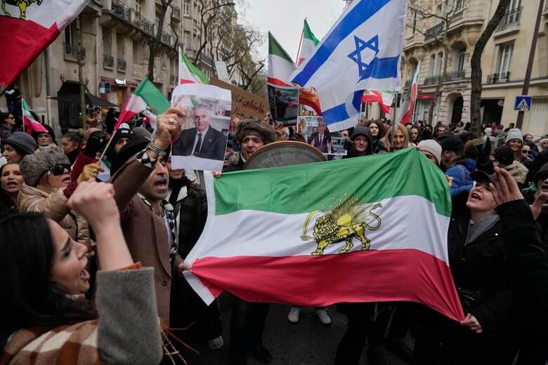 在巴黎,超過2000人揮舞著1979年伊朗革命之前的舊國旗,在示威現場高喊「拒絕恐怖分子的伊朗伊斯蘭共和國(Islamic Republic of Iran)」。