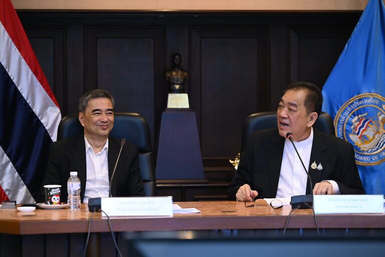(台泰時報 1 月 13 日電)泰國商會與泰國商會聯合會今天接待阿披實率領的民主黨(Democrat Party)高層,就經濟、政治與國家治理方向進行政策交流,會中提出 6 項亟需推動的國家層級議程,盼在大選前促成政黨與企業界的制度性合作。