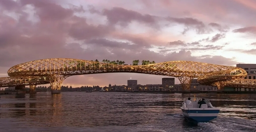 該構想由國際知名建築事務所 MVRDV 提出,選址位於昭披耶河介於帕博告橋(Phra Pok Klao Bridge)與鄭皇橋(Taksin Bridge)之間,北岸銜接宋瓦路歷史街區,南岸則連通吞武里一側的社區與寺院腹地。規劃單位指出,目前跨河動線仍以車行橋梁與渡船為主,對行人與自行車族群而言便利性有限,新設人行橋可作為完整交通網絡的重要拼圖。