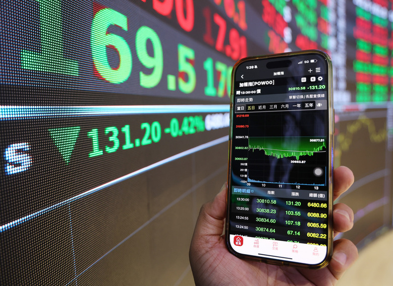 台北股市15日開低走低,加權指數開盤為30746.98點,盤中最高30877.31點,最低30663.87點,收盤跌131.20點,為30810.58點,跌幅0.42%,成交金額新台幣6480.66億元。(中央社記者張新偉攝)