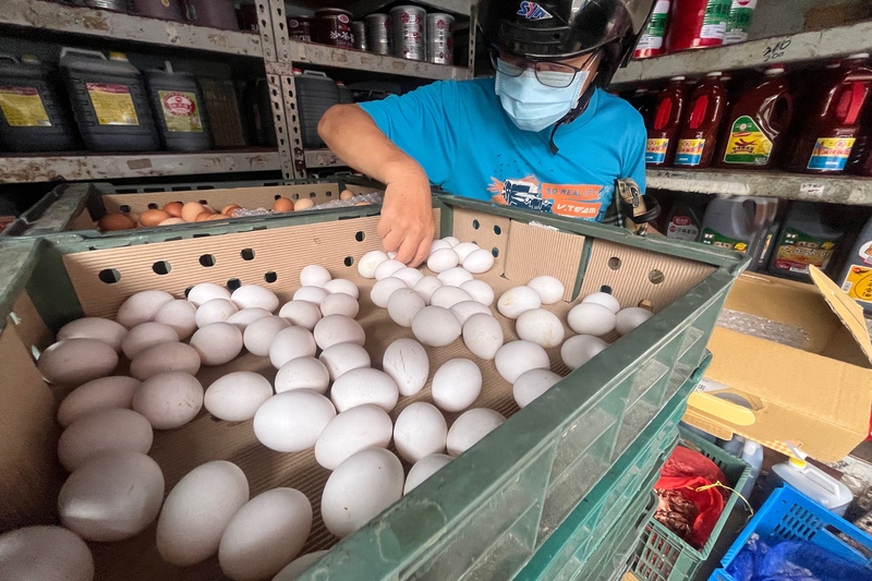 國泰金22日發布9月國民經濟信心調查,時事題詢問民眾對於未來1年物價水準與通貨膨脹率預期,調查顯示,68%民眾預期1年以後通貨膨脹率大於2%,32%民眾認為會小於2%。圖為民眾在台北市北投區雜糧行買雞蛋。(中央社記者徐肇昌攝)