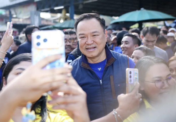 阿努廷當日上午 10:00 於春蓬府他塞縣市集受訪,回應外界關注未來組閣動向。他提到,對於前未來前進黨領袖塔納通(Thanathorn Juangroongruangkit)表示,若藍營政黨在選舉中獲得第 1 名,橘營政黨將轉任反對黨的說法,自己尚未親耳聽聞相關表態,因此不便評論,以免引發不必要的衝突。