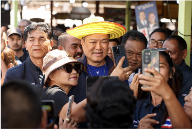 泰自豪黨方面,黨魁兼總理候選人阿努廷(Anutin Charnvirakul)17 日南下春蓬府,為該黨 3 個選區的國會議員候選人助選,行程涵蓋多處傳統市場,與攤商及民眾近距離互動。現場氣氛熱絡,不少支持者主動合影,部分移居南部的武里南府民眾亦表態支持。阿努廷呼籲選民在選區票與政黨票上「成對支持」,強化整體席次布局。
