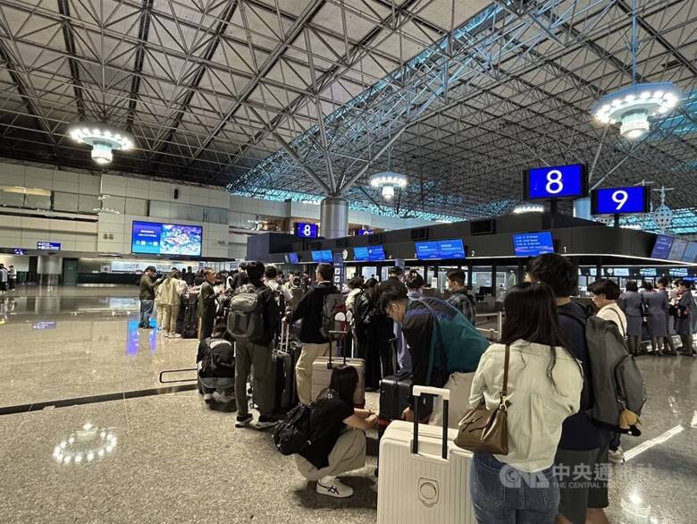 圖為桃園機場報到人潮。(中央社檔案照片)
