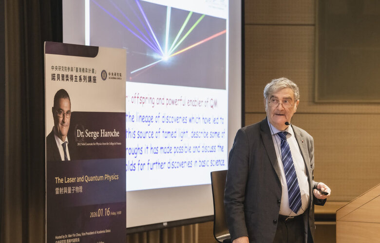 中央研究院「台灣橋梁計畫」(Taiwan Bridges)系列第三場講座16日開講,邀請2012年諾貝爾物理學獎得主、法國巴黎法蘭西工學院量子物理學系主任塞爾格.哈羅契(Serge Haroche),以「雷射與量子物理」(The Laser and Quantum Physics)為題,發表演講。
