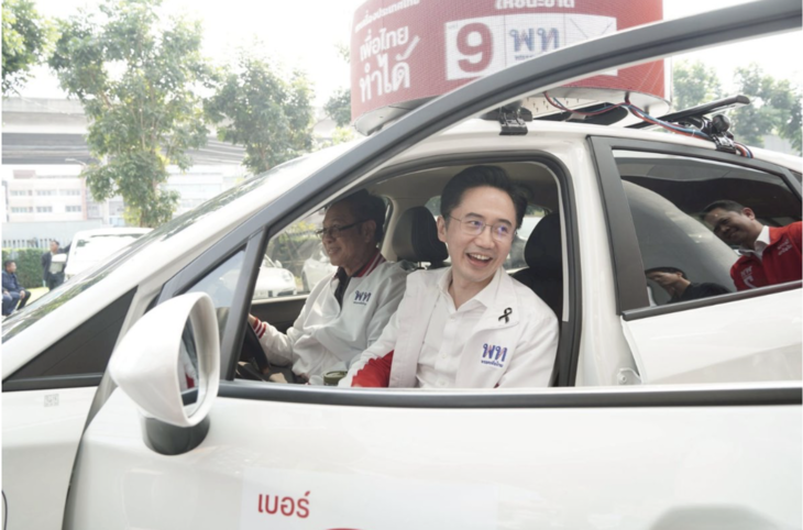 (台泰時報1月19日電)泰國為泰黨今日正式啟動新一波競選宣傳行動,由該黨總理候選人尤沙能(Yotsanan Wongsawat)領軍,放行一支以電動車為主的競選宣傳車隊,自黨部出發後繞行曼谷多個選區,主軸聚焦政策內容說明及各區候選人號碼,盼以更貼近民眾的方式強化政策傳達。