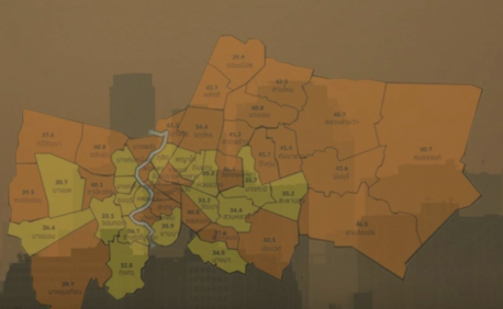 (台泰時報1月20日電)曼谷空氣品質持續惡化,細懸浮微粒PM2.5濃度再度超出安全標準。根據曼谷市空氣品質資訊中心今晨7時公布數據,全市平均PM2.5濃度為39.7微克/立方公尺,高於標準值37.5微克/立方公尺,整體空氣品質達「橘色等級」,已開始對健康造成影響。