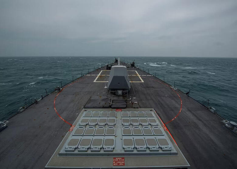 美軍飛彈驅逐艦芬恩號(圖)與海軍測量船瑪麗西爾斯號16至17日穿越台灣海峽。(Jason Waite/U.S. Navy/Handout via 路透社)