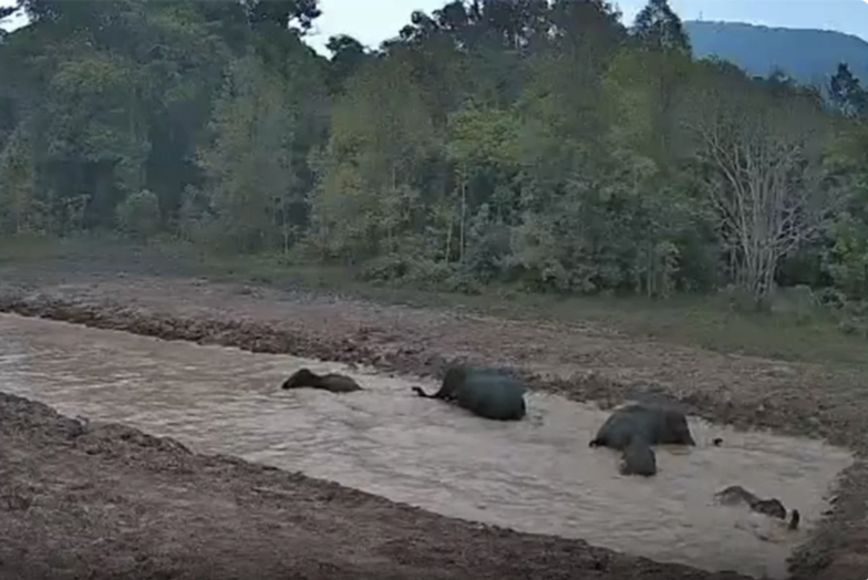 (台泰時報1月22日電)泰國考艾國家公園近日觀察到一群野生大象在園區內新開鑿的水塘戲水活動,顯示政府推動的人工水源計畫已初步發揮效果,有助於降低野象離開森林、進入社區覓食與飲水的情況,減少人象衝突風險。