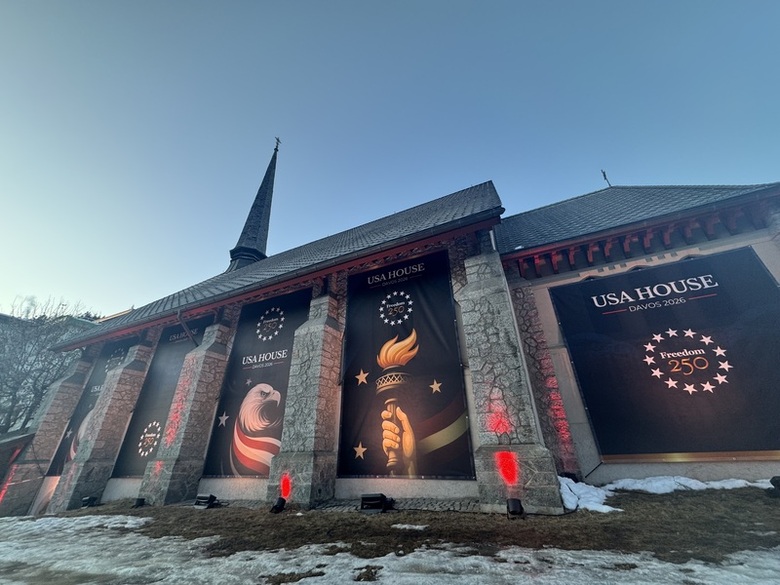 世界經濟論壇(WEF)在瑞士達沃斯舉行期間,各國設有自己的主題館,美國之屋今年在一座教堂中。(中央社記者郭芳君達沃斯攝)