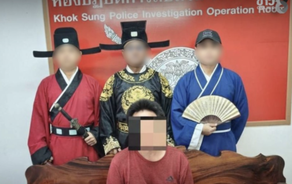 此外,警方也同步公布一項新嘗試,運用AI技術將警察形象轉換為象徵清廉與正義的中國歷史人物「包拯(包青天)」及其護衛造型,相關合成圖片已發布於Khok Sung警察局官方臉書專頁,作為反犯罪宣導的一環。