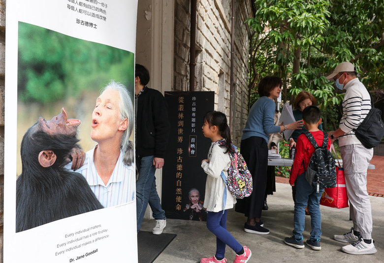 「從叢林到世界—珍古德的自然使命」專題影片24日下午在台北首映,吸引上百人到場,許多是親子一同觀賞,現場氣氛溫馨。