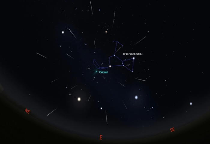 研究院助理院長蘇帕律(Supharerk Krihanon)指出,獵戶座流星雨的活動期介於10月2日至11月7日之間,今年極大期落在10月21日晚間。當晚約22時30分起,觀測者可朝東方天空尋找獵戶座,流星將自其手臂附近輻射而出,並隨時間升至天頂位置,直至翌日清晨仍可見。