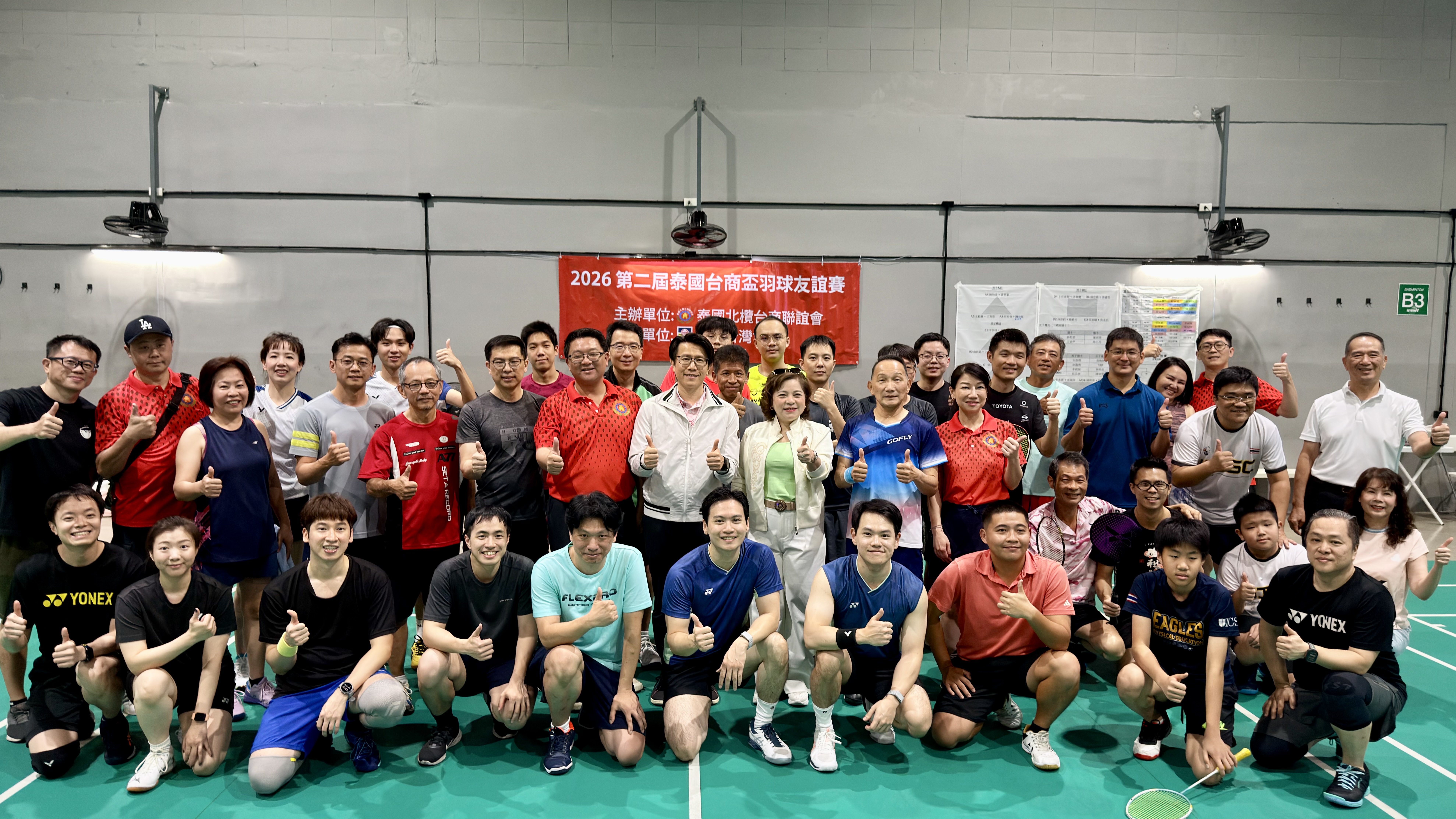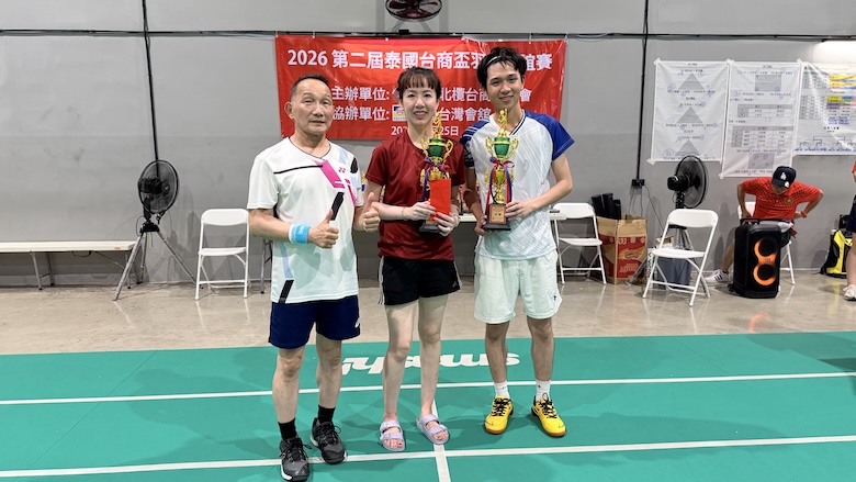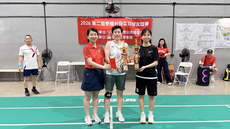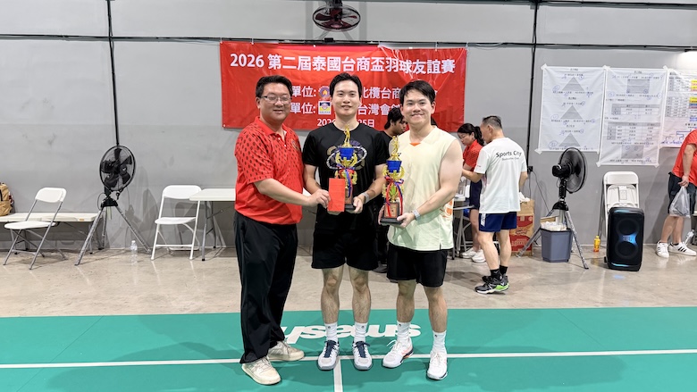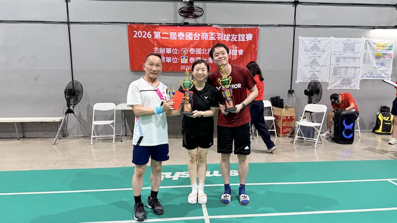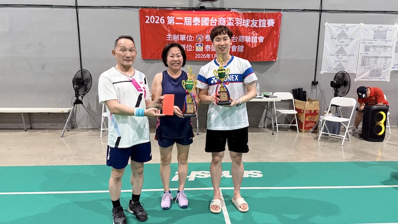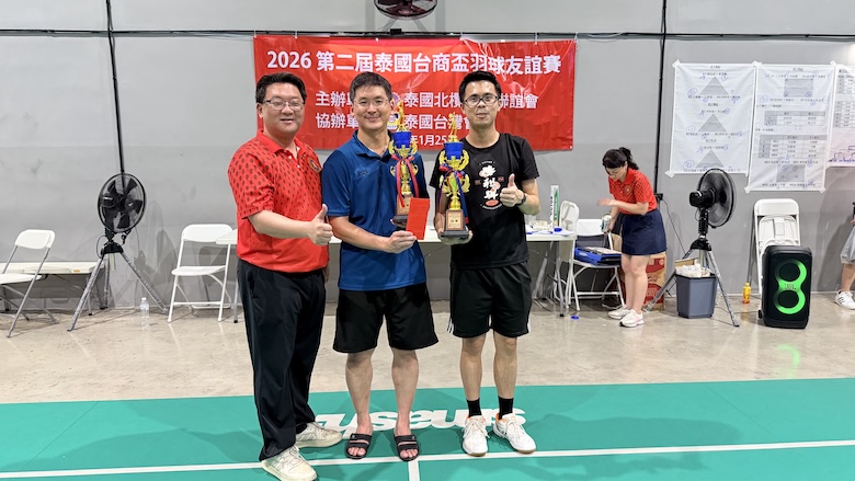 【台泰時報/曼谷電】第二屆「2026 泰國台商盃羽毛球邀請賽」於 1 月 25 日在曼谷 Smash! Badminton & Pickleball 舉行。本屆賽事由泰國北欖台商聯誼會主辦、泰國台灣會館協辦,結合運動競技與社群交流,吸引多組男子、女子及混合雙打選手參與。賽事自上午完成報到與開幕儀式後正式展開,場上競逐激烈,場下互動熱絡,充分展現旅泰台商社群的凝聚力與活力。