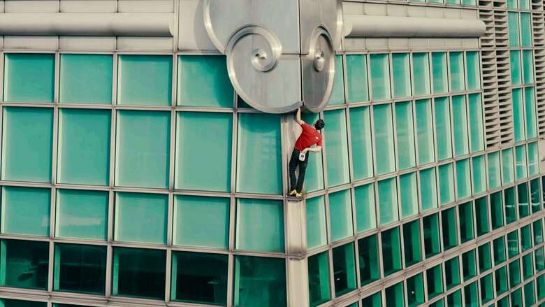 美國自由攀岩好手霍諾德成功挑戰徒手攀爬台北101大樓。(Netflix提供)