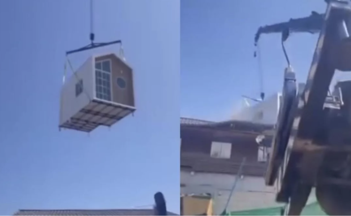 (台泰時報1月26日電)泰國東北部孔敬府市區25日發生施工意外,一輛大型起重機在吊運預製組合屋時失去平衡,連同重物倒塌,壓毀鄰近一棟兩層木造住宅。事發當時屋內一名29歲男子受困,經工人與救援人員破窗協助後脫困,未受傷。