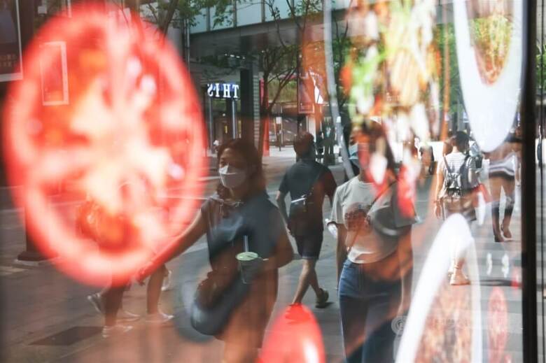 國發會27日公布2025年12月景氣燈號,時隔近1年,再次亮出代表景氣熱絡的紅燈。圖為台北市信義區民眾逛街。(中央社檔案照片)