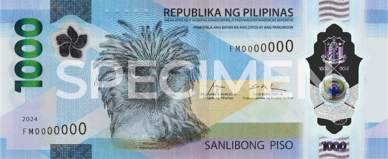 菲律賓中央銀行2022年發行新款紙鈔,其中1000披索的圖樣為國鳥菲律賓鷹。(圖取自菲律賓中央銀行網頁bsp.gov.ph/)