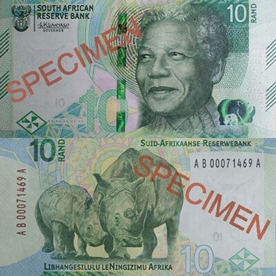 南非儲備銀行(SARB)於2023年5月4日推出升級版紙鈔。新版紙鈔正面保留南非首位黑人總統曼德拉(Nelson Mandela)的肖像,背面以非洲五霸的圖樣呈現,包括獅子、豹、非洲象、非洲水牛、黑犀牛等,並由單一動物,轉換成動物家族的意象。